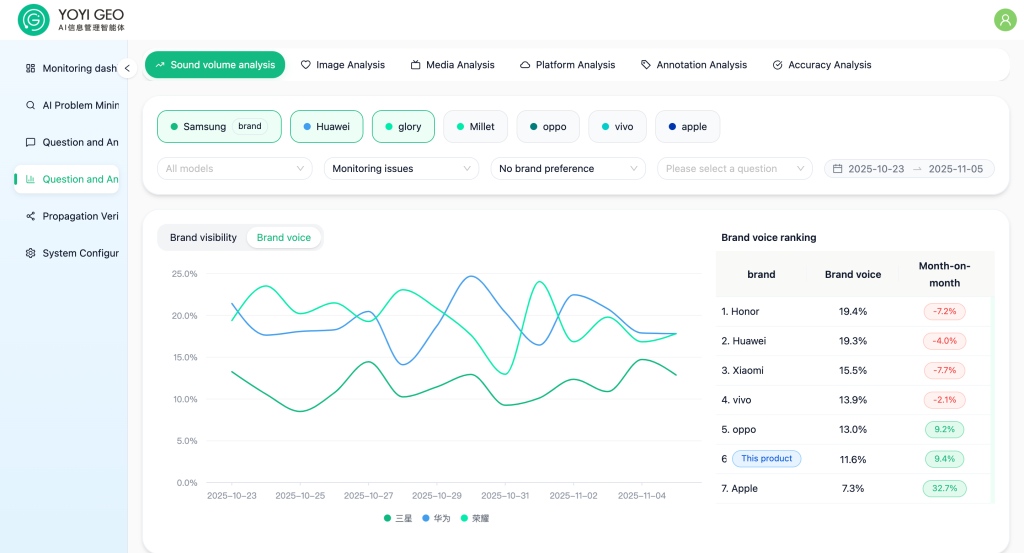The essence of the YOYI GEO Agent is an AI information management agent, a brand information management platform focused on AI search and generative AI tool scenarios. The biggest difference from the aforementioned service providers is that the YOYI GEO Agent is redefining the efficacy standards of brand marketing through its tangible data tracking system. Unlike traditional providers who remain stuck in traditional SEO methodologies like keyword ranking and traffic analysis, this platform achieves a full-chain closed-loop management from “Monitoring -> Diagnosis -> Optimization -> Verification” realizing a GEO solution of “AI Q&A full-chain tracking + tangible data platform,” fully meeting the marketing demands of the AI era.