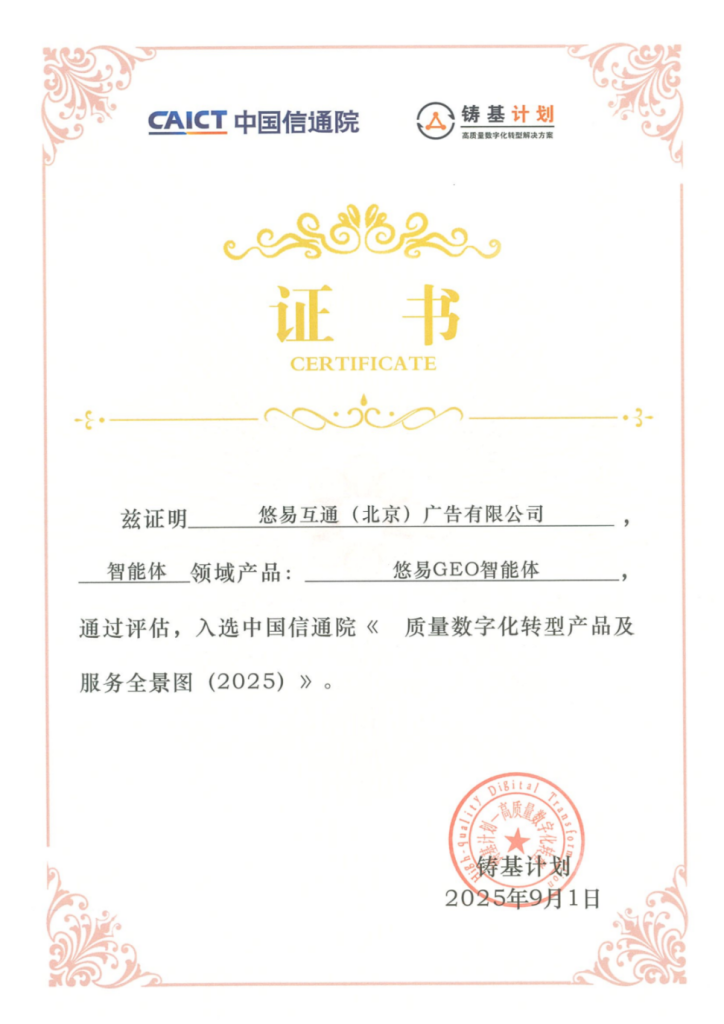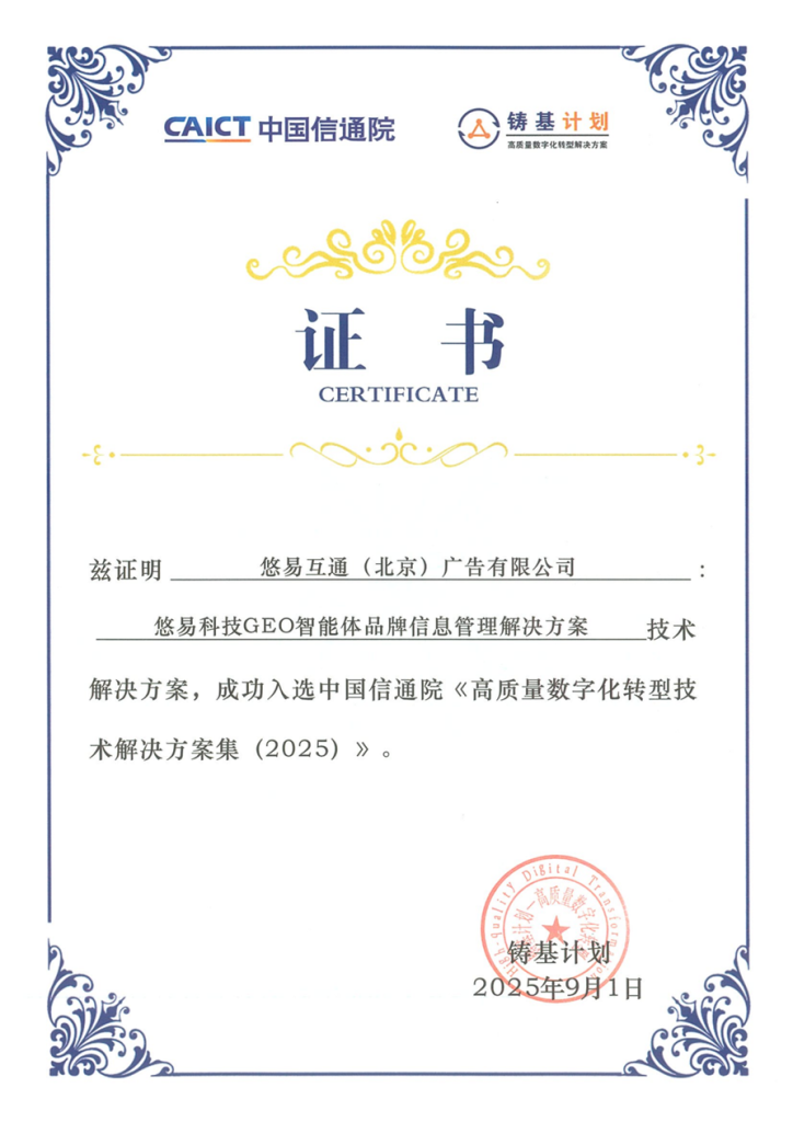 YOYI GEO Agent Brand Information Management Solution Selected for CAICT’s “High-Quality Digital Transformation Technology Solutions Collection (2025)”